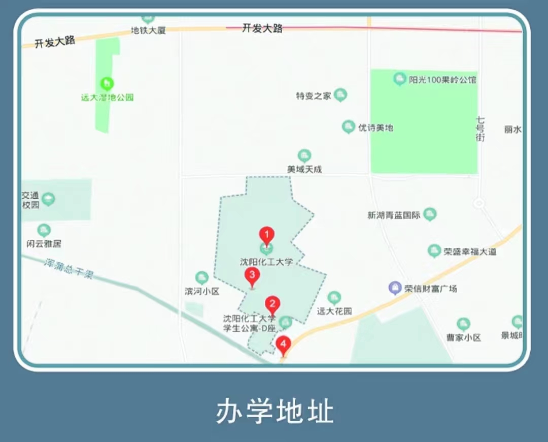 公共汽车:沈阳站乘 206 路公共汽车,沈阳化工大学东门站下车即是。